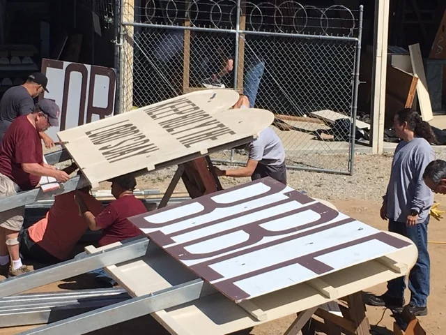 In 2004, Larry Robillard got the idea to display the 10 Commandments on some property his family owned along the 15 Freeway. There was much controversy in the National News about removing the 10 Commandments from courts, classrooms and other public locations. He asked David Hernandez if the company he worked for, SAME DAY SIGNS in Riverside, could donate some lettering if the 10 sign boards were provided. On Good Friday 2005, Larry, David and his brother Carlos, Daryl Harmon, Mike Glassey and James Flores, went out with some shovels, cement, 4x4s and put up the 10 signs, spaced along the side of the freeway, like the Burma Shave signs of old. The guys were friends from the weekly Men’s Prayer Breakfast at Harvest Christian Fellowship in Riverside, CA. They also had been on Mission trips to Mexico together and Mike, James and Larry had served as Chaplains after the 9/11 terrorist attack on the World Trade Center in New York City.